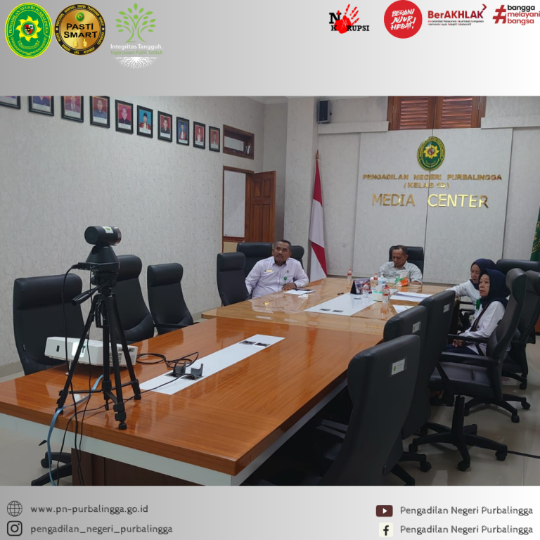 Bertempat di Ruang Media Center Pengadilan Negeri Purbalingga, Ketua Pengadilan Negeri Purbalingga bersama dengan Panitera, Sekretaris, dan Panitera Muda Hukum Pengadilan Negeri Purbalingga menghadiri Undangan Rapat Pembahasan Realisasi Anggaran Layanan Hukum dan Penginputan Aplikasi Pelaporan yang diadakan oleh Direktorat Jenderal Badan Peradilan Umum. Rapat tersebut sebagai tindak lanjut hasil monitoring dan evaluasi TW II terhadap…