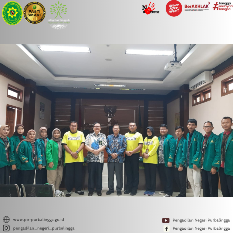 Pengadilan Negeri Purbalingga melaksanakan Upacara Peringatan Hari Ulang Tahun Ke-78 Mahkamah Agung RI yang dipimpin oleh Ketua Pengadilan Negeri Purbalingga, Bapak Ayun Kristiyanto, S.H., M.H. pada hari Sabtu, 19 Agustus 2023 di halaman Kantor Pengadilan Negeri Purbalingga. Selain penyampaian Pidato Ketua Mahkamah Agung RI Peringatan HUT Ke-78 Mahkamah Agung RI, Ketua Pengadilan Negeri Purbalingga juga…