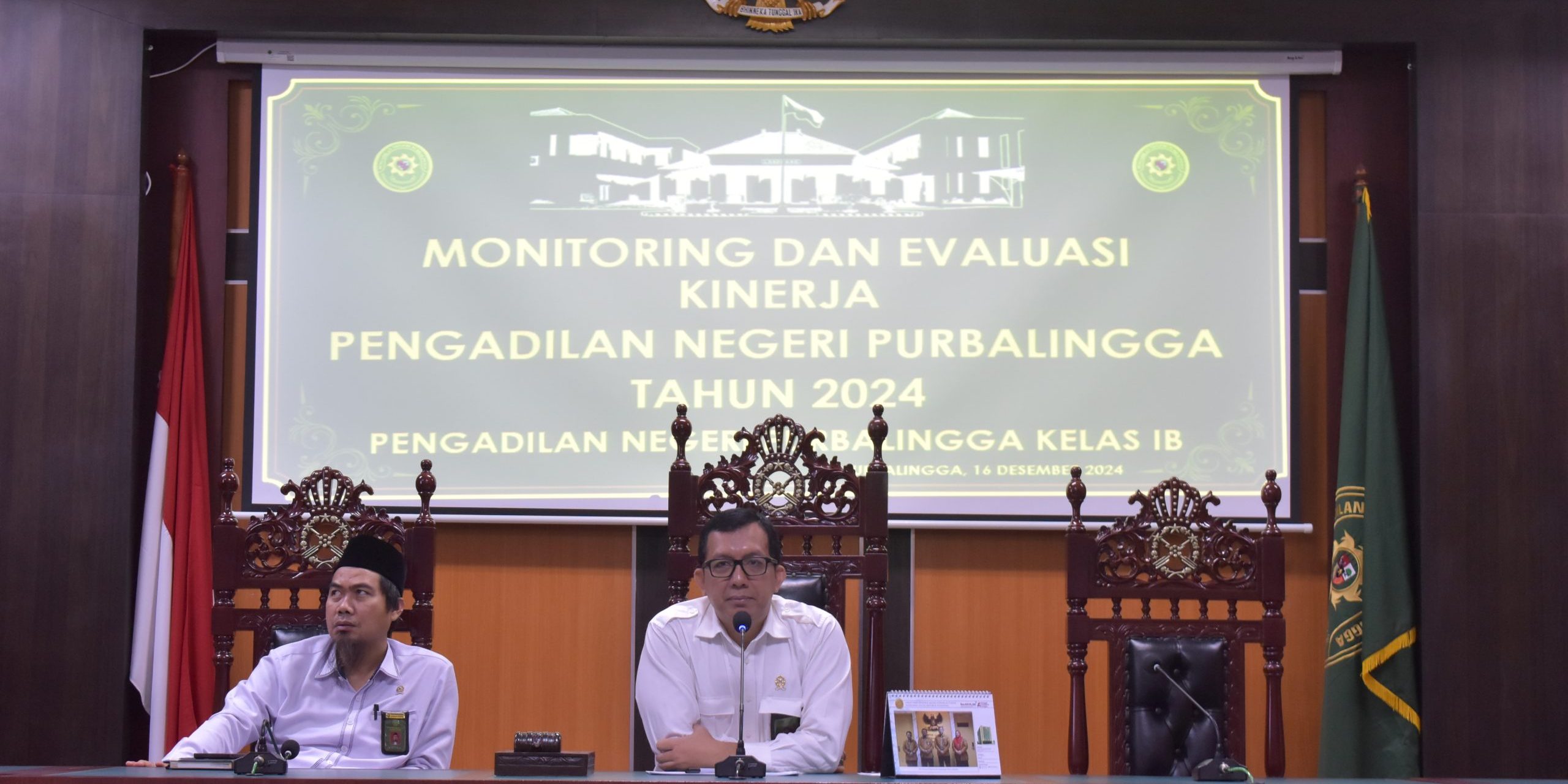 PN Purbalingga adakan Monev Kinerja Tahun 2024(16/12/2024) Pengadilan Negeri Purbalingga mengadakan Monitoring dan Evaluasi Kinerja Tahun 2024. Dipimpin oleh KPN Purbalingga, Bapak Dr. Eko Julianto, S.H., M.M ., M.H. dan didampingi oleh WKPN Purbalingg, Para Hakim, Panitera , sekretaris serta seluruh pegawai Pengadilan Negeri Purbalingga, acara tersebut berlangsung untuk mengetahui capaian kinerja yang diperoleh di tahun 2024 serta perbandingannya terhadap Perjanjian Kinerja Tahun 2024 yang telah ditandatangani oleh KPT Semang dan KPN Purbalingga.