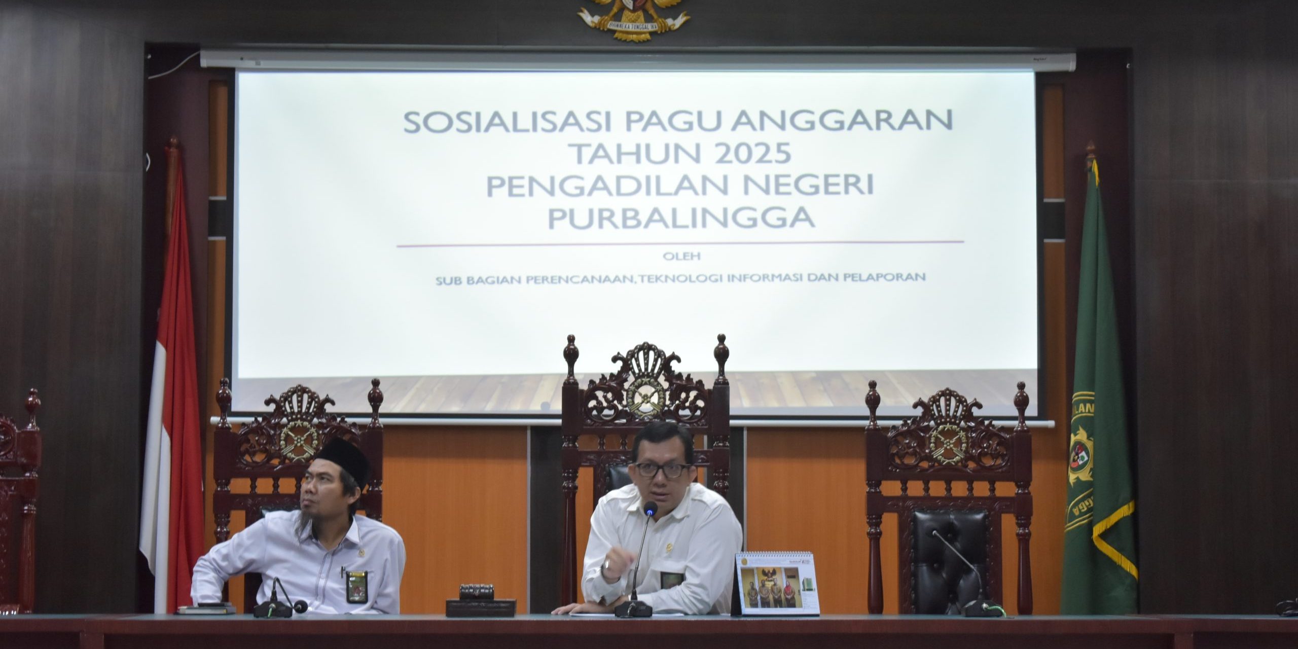 PN Purbalingga adakan Sosialiasai Pagu Anggaran TA 2025(16/12/2024) Pengadilan Negeri Purbalingga mengadakan Sosialiasi Pagu Anggaran untuk DIPA 01 dan DIPA 03 Tahun Anggaran 2024. Dipimpin oleh KPN Purbalingga, Bapak Dr. Eko Julianto, S.H., M.M ., M.H. dan didampingi oleh WKPN Purbalingg, Para Hakim, Panitera , sekretaris serta seluruh pegawai Pengadilan Negeri Purbalingga, acara tersebut berlangsung atas dasar turunnya DIPA petikan online TA 2025 PN Purbalingga tertanggal 2 Desember 2024 untuk DIPA 01 dan DIPA 03.