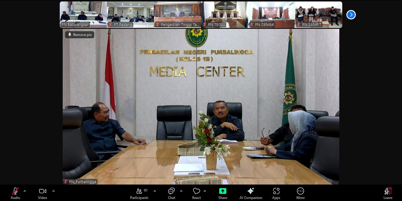Pengadilan Negeri Purbalingga mengikuti acara Sosialiasi Uji Kompetensi Panitera dan Panitera Muda lingkungan Badan Peradilan Umum di Ruang Media Center Pengadilan Negeri Purbalingga (14/01/2025). Acara tersebut diselenggarakan oleh Direktorat Jenderal Badan Peradilan Umum Mahkamah Agung RI.