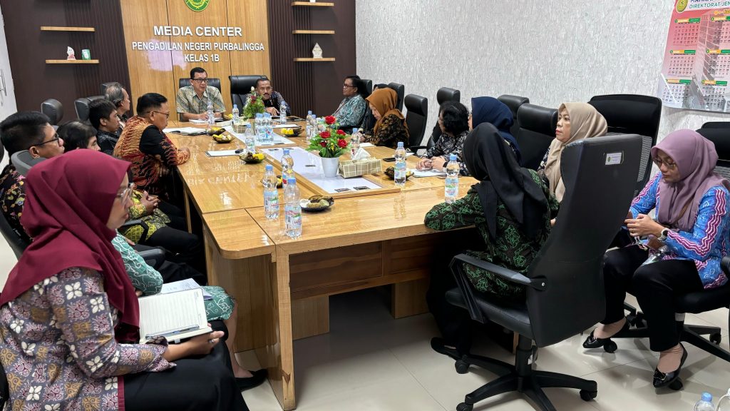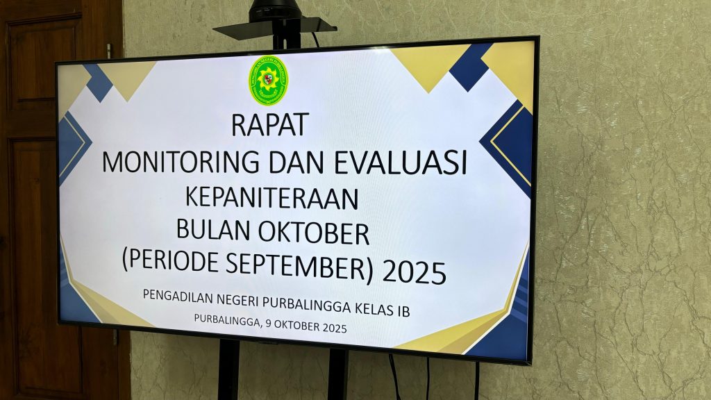 Ketua Pengadilan Negeri Purbalingga, Bapak Dr. Eko Julianto, S.H., M.M., M.H., memimpin jalannya Rapat Monitoring dan Evaluasi Kepaniteraan bulan Oktober 2025 yang dilaksanakan di Ruang Media Center Pengadilan Negeri Purbalingga. Rapat tersebut diikuti oleh Panitera, Para Panitera Muda, Panitera Pengganti, Jurusita / Jurusita Pengganti, serta staf kepaniteraan.