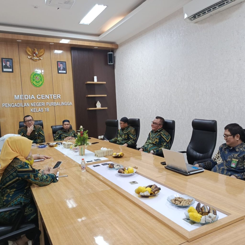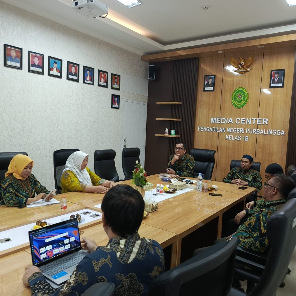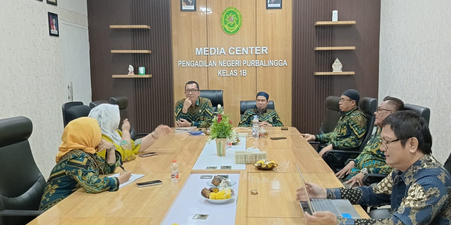 Ketua Pengadilan Negeri Purbalingga, Bapak Dr. Eko Julianto, S.H., M.M., M.H., didampingi oleh Wakil Ketua Pengadilan Negeri Purbalingga, Bapak Erwindu, S.H. memimpin jalannya Rapat Monitoring dan Evaluasi serta Pembinan Kepada Hakim Pengadilan Negeri Purbalingga bulan November 2025 yang dilaksanakan di Ruang Media Center Pengadilan Negeri Purbalingga