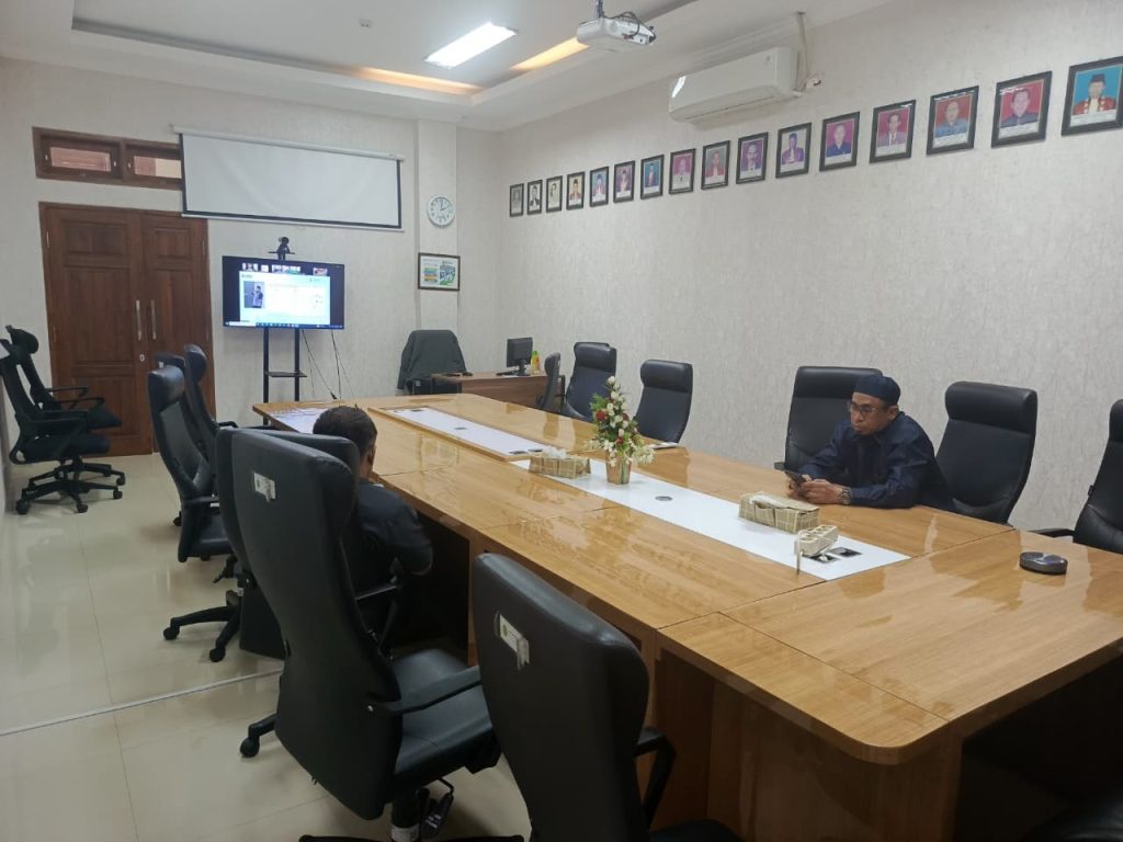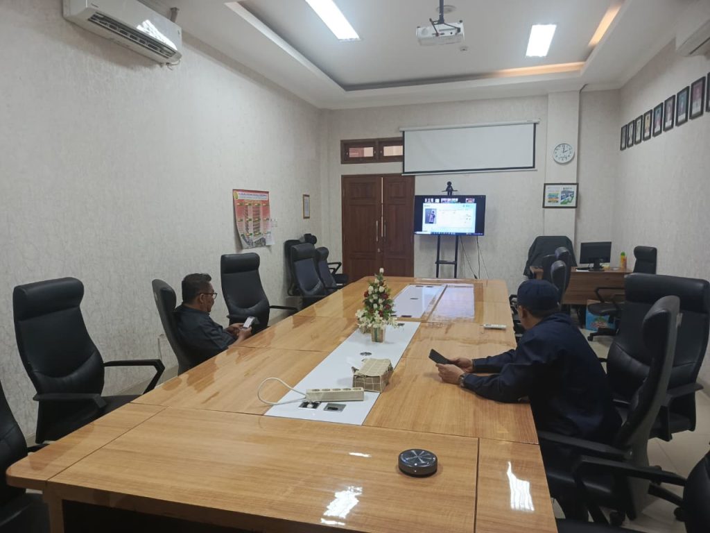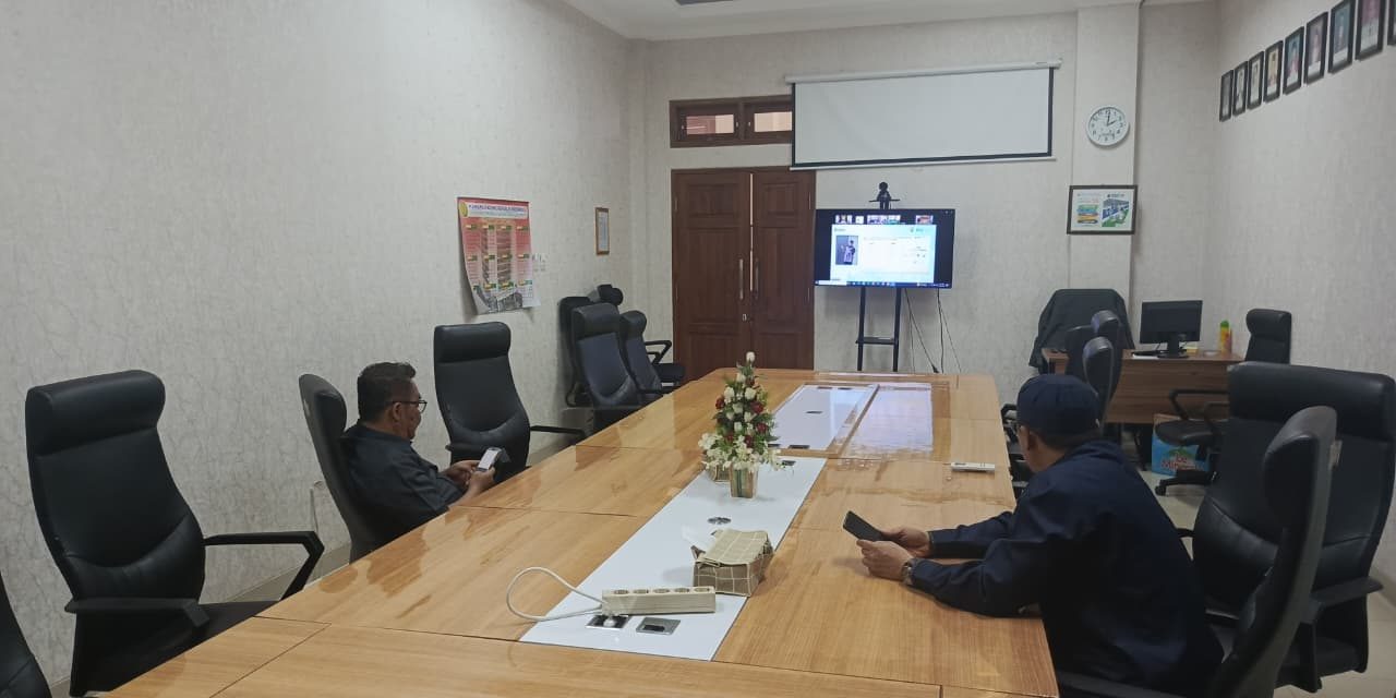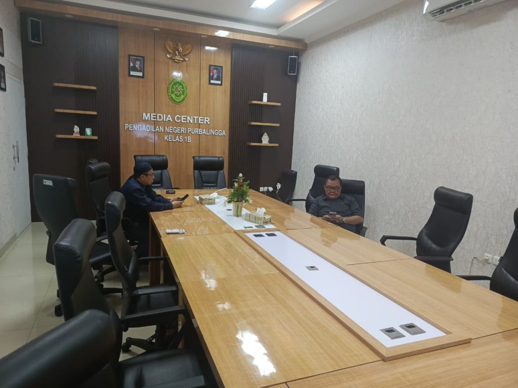 Ikatan Hakim Pengadilan Negeri Purbalingga mengikuti acara Penandatangan Perjanjian Kerja Sama antara IKAHI Pusat dengan BSI secara daring di ruang media center.