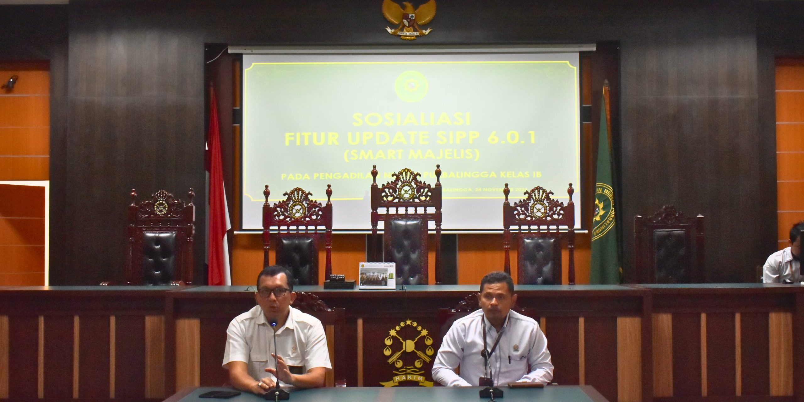 Pada hari Senin, 24 November 2025, bertempat di Ruang Sidang Utama Pengadilan Negeri Purbalingga, telah diadakan Sosialisasi Fitur Update SIPP Versi 6.0.1 (Smart Majelis) yang diikuti oleh Bapak Ibu Hakim, Panitera Muda, Kasubbag, Pejabat Struktural/Fungsional Kepaniteraan dan Kesekretariatan serta tenaga teknis dan tenaga non-teknis pada Pengadilan Negeri Purbalingga.