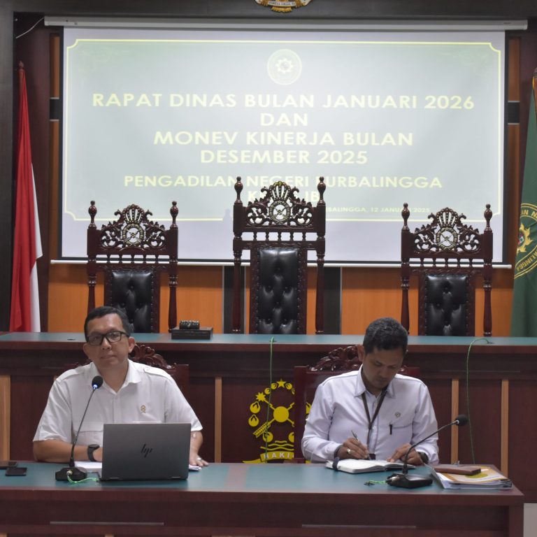 Pengadilan Negeri Purbalingga selenggarakan Rapat Rapat Dinas Bulan Januari 2026 dan Monitoring dan Evaluasi Kinerja Bulan Desember 2025 (12/01/2026)