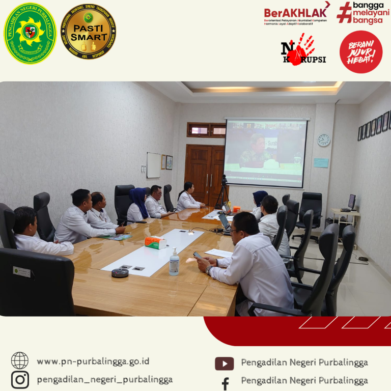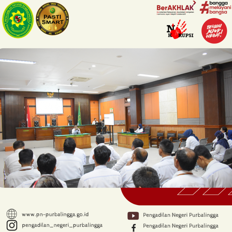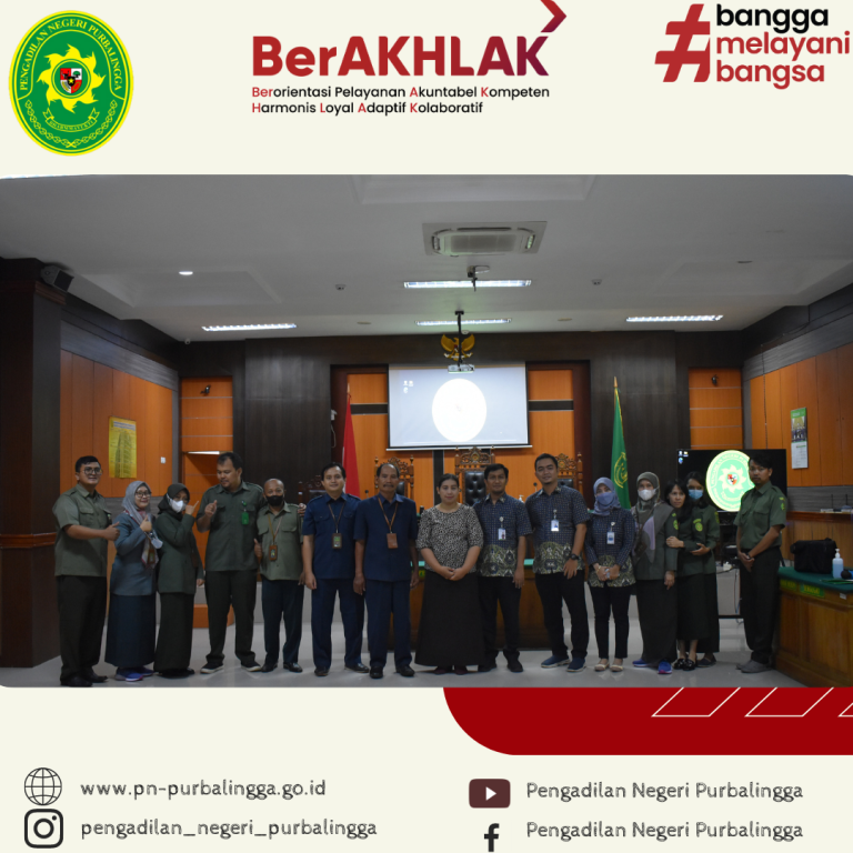 Purbalingga, 20 Februari 2023 Telah dilaksanakan Rapat Evaluasi Zona Integritas Tahun 2022 dan Tahun 2023 Tahap Akhir di Ruang Sidang Kartika Pengadilan Negeri Purbalingga Kelas IB. Rapat tersebut dipimpin oleh Ketua Pembangunan Zona Integritas Pengadilan Negeri Purbalingga, Bapak Hayadi, S.H., M.H. Rapat diikuti oleh Ibu/Bapak Hakim, Panitera, Para Panmud, Kasub, PP, JS, Staff serta PPNPN…