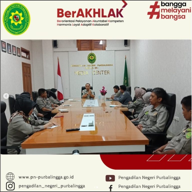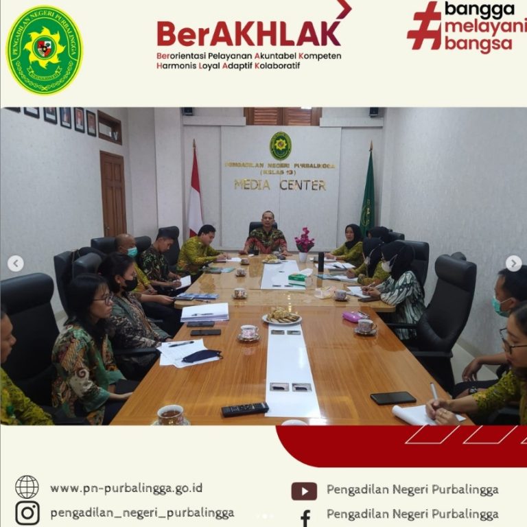 Rapat Kesekretariatan Pubalingga, 19 Januari 2023 Bertempat di Ruang Rapat Pengadilan Negeri Purbalingga Kelas IB, telah dilaksanakan Rapat Berjenjang Kesekretariatan dan Monev Kegiatan Kesekretariatan yang dipimpin oleh Bapak Ayun Kristiyanto, S.H., M.H. selaku Ketua Pengadilan Negeri Purbalingga Kelas IB. Rapat tersebut diikuti oleh Sekretaris, Para Kasub, Staf, serta PPNPN.
