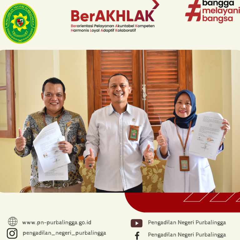 Purbalingga, 9 Januari 2023 Pengadilan Negeri Purbalingga Kelas IB melaksanakan penandatanganan MoU dengan Lembaga Bantuan Hukum (LBH) Perisai Kebenaran Cabang Purbalingga.