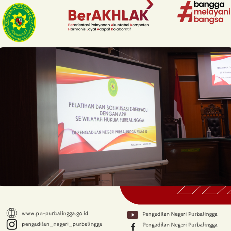 Telah dilaksanakan Pelatihan dan Sosialisasi E-Berpadu dengan Aparat Penegak Hukum Se Wilayah Hukum Purbalingga yang bertempat di Ruang Sidang Kartika Pengadilan Negeri Purbalingga Kelas IB. Kegiatan tersebut sebagai tindak lanjut dari Peraturan Mahkamah Agung Nomor 8 Tahun 2022 tentang Administrasi dan Persidangan Perkara Pidana di Pengadilan Secara Elektronik dan Surat Keputusan Ketua Mahkamah Agung Nomor…