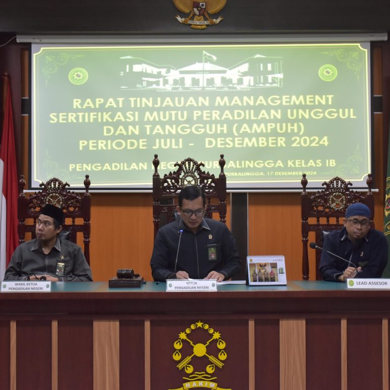 PN Purbalingga hadiri acara Bimbingan Teknis Administrasi dan Persidangan Perkara di Pengadilan Secara Elektronik (E-Court / SIPP) (18/12/2024) Acara tersebut berlangsung di Ballroom Hotel Harris Semarang, Jawa Tengah. Narasumber oleh Panitera Mahkamah Agung RI, Dr. Heru Pramono, S.H., M.Hum, Ketua Pengadilan Tinggi Jawa Tengah, H. Mochamad Hatta, S.H., M.H., Wakil Ketua Pengadilan Tinggi Jawa Tengah,…