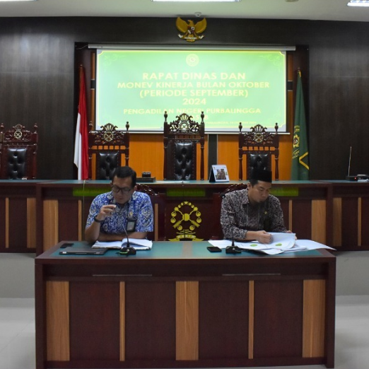 Purbalingga, 18 Oktober 2024 Ketua Pengadilan Negeri Purbalingga, Bapak Dr. Eko Julianto, S.H., M.M., M.H., memimpin langsung Rapat Dinas dan Monev Kinerja Bulan Oktober (Periode Bulan September) 2024