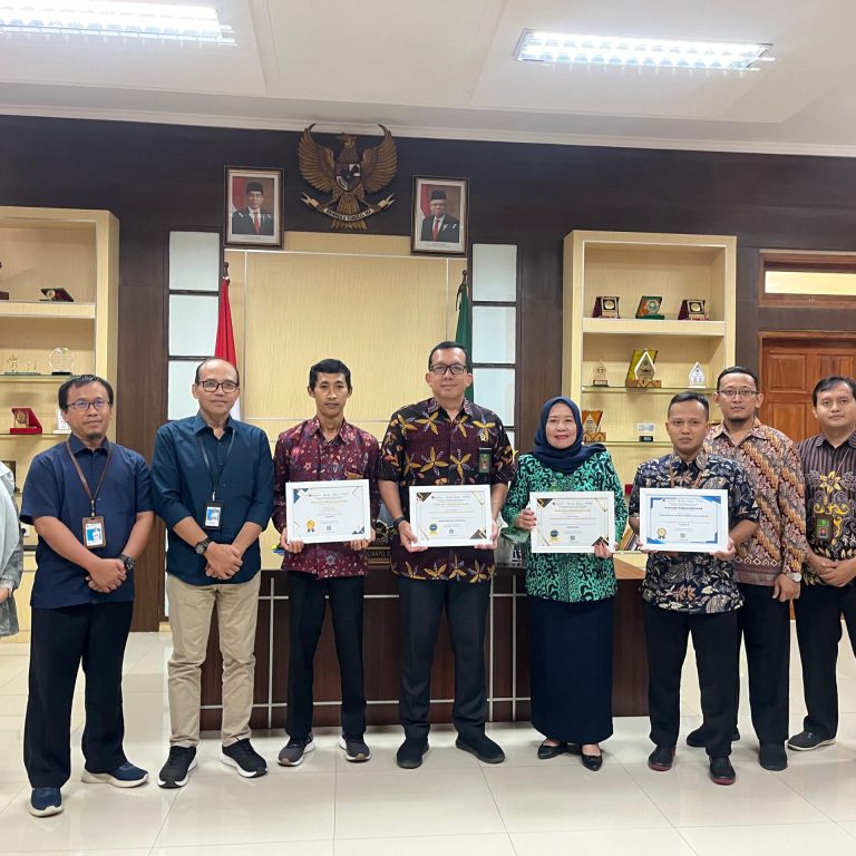 Ketua Pengadilan Negeri Purbalingga, Bapak Dr. Eko Julianto, S.H., M.M., M.H., beserta Sekretaris dan Tim Pengelola Keuangan Pengadilan Negeri Purbalingga menerima piagam penghargaan KPPN Purwokerto Awards Semester I Tahun 2024 (22/08/24)