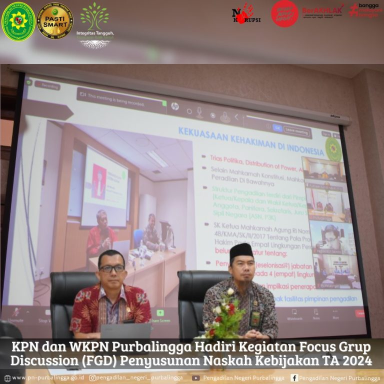 Purbalingga, 31 Mei 2024 Ketua Pengadilan Negeri Purbalingga, Bapak Dr. Eko Julianto, S.H., M.M., M.H., dan Wakil Ketua Pengadilan Negeri Purbalingga, Bapak Erwindu, S.H., hadiri Kegiatan Focus Group Discussion (FGD) Penyusunan Naskah Kebijakan Tahun Anggaran 2024.