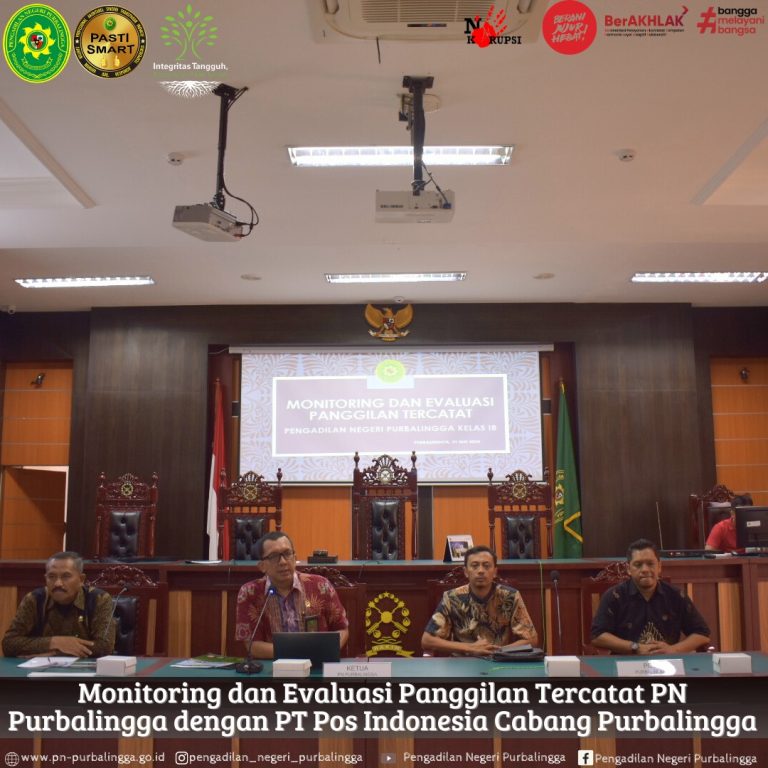 Purbalingga, 31 Mei 2024 Pengadilan Negeri Purbalingga Kelas IB laksanakan Monitoring dan Evaluasi Panggilan Tercatat Pengadilan Negeri Purbalingga dengan PT POS Indonesia Cabang Purbalingga