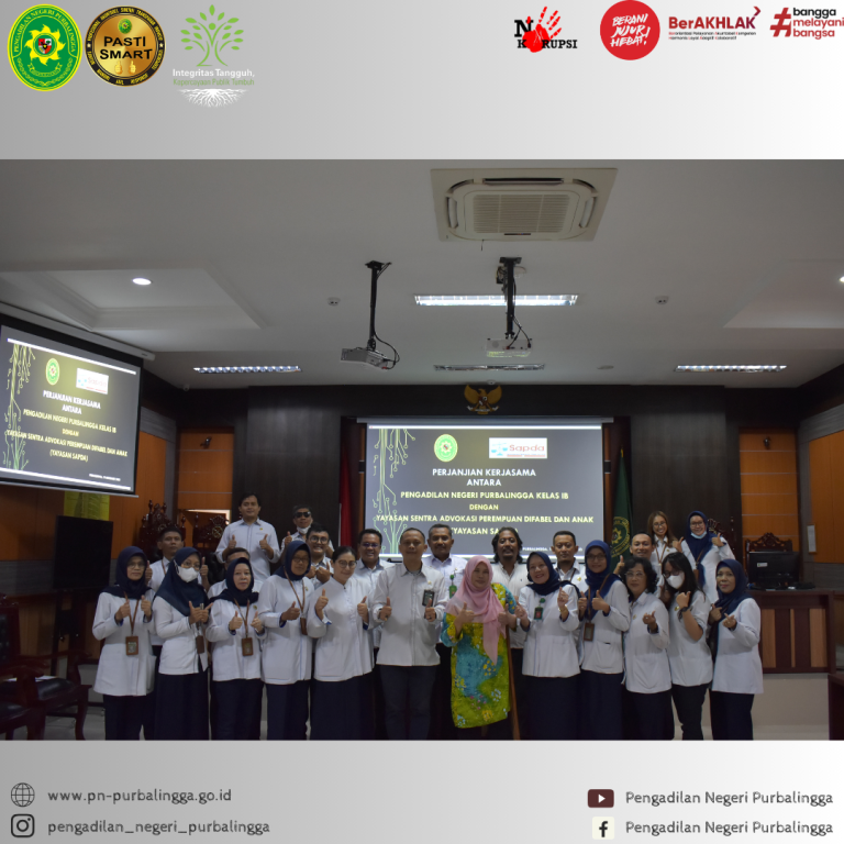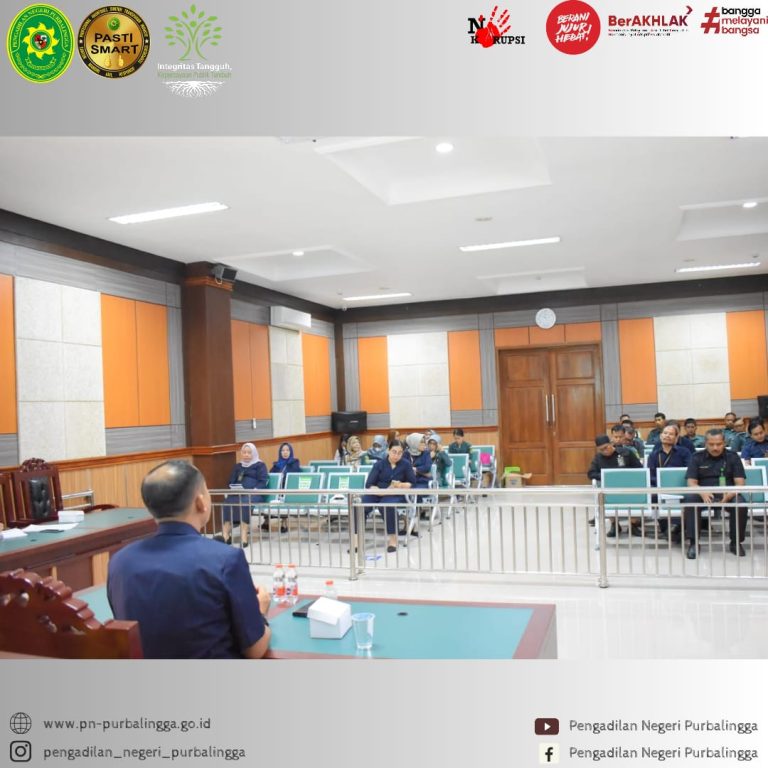 Pengadilan Negeri Purbalingga Kelas IB melaksanakan kunjungan Hakim Pengawas dan Pengamat (KIMWASMAT) ke Rumah Tahanan Negara Kelas IIB Purbalingga pada hari Selasa, 21 November 2023. Hakim yang bertugas melakukan pengawasan dan pengamatan adalah Bapak Hayadi, S.H., M.H. didampingi oleh Panitera Muda Pidana dan Staf Kepaniteraan Muda Pidana. Hakim Pengawas dan Pengamat dalam pelaksanaannya bertugas mengawasi…